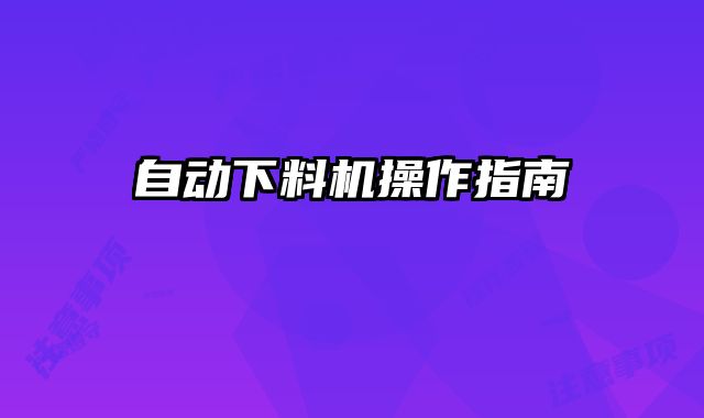 自動(dòng)下料機(jī)操作指南