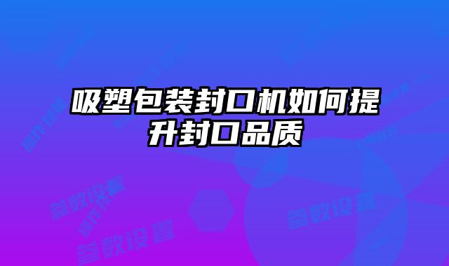 吸塑包裝封口機(jī)如何提升封口品質(zhì)?隨著市場競爭日益激烈,產(chǎn)品包裝質(zhì)量成為...